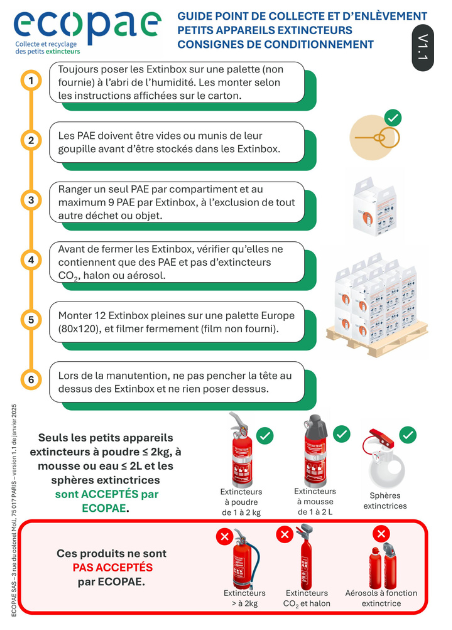 - les consignes pour le conditionnement des PAE : consignes de tri, stockage des cartons, montage de la palette